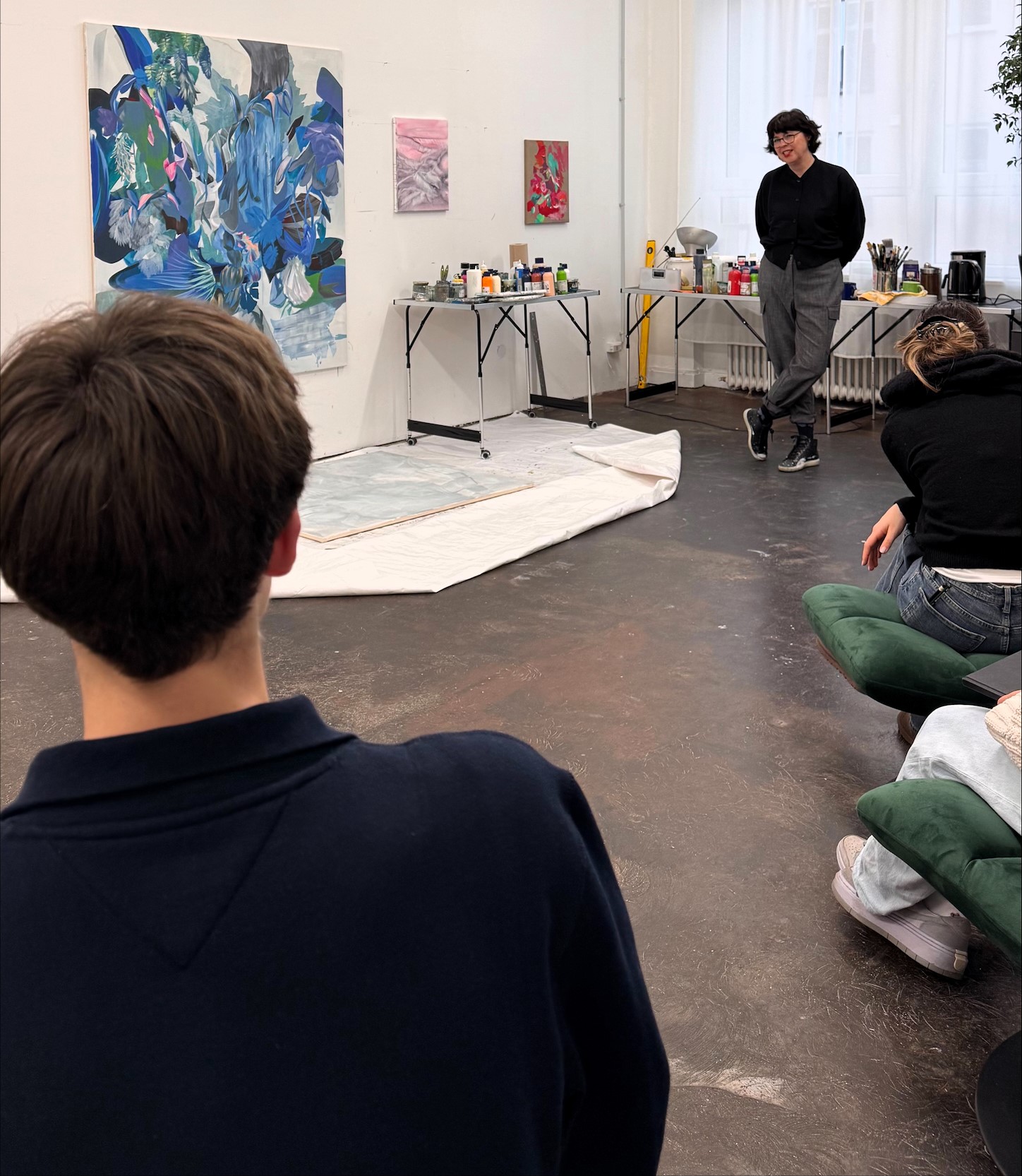 Am Donnerstag, 12.02.2026, hatte der Kunst-Leistungskurs der Q2 unter der Leitung von Ekaterina Leo die Gelegenheit, die Frankfurter Künstlerin Tatiana Urban in ihrem Atelier zu besuchen und mit ihr ins Gespräch zu kommen. Dieses Treffen sollte den Schülerinnen und Schülern einen Einblick in das Berufsfeld einer freischaffenden Künstlerin vermitteln, aber auch auf die gemeinsame Arbeit mit Frau Urban vorbereiten.