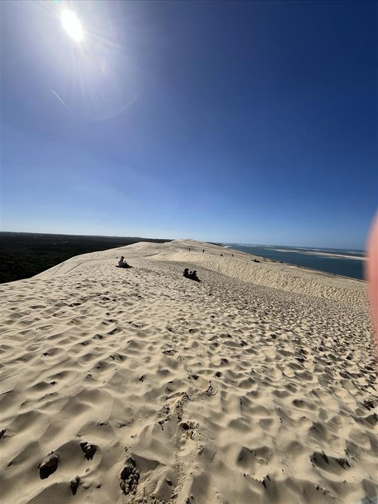 An den Wochenenden haben wir verschiedene kleine Ausflüge gemacht. Am besten gefallen hat mir ein Ausflug zu Dune du Pilat, denn der Ausblick von der größten Wanderdüne Europas ist einfach traumhaft. Aber auch Bordeaux mit der besonders schönen Architektur und dem einzigartigen Brunnen „Mirror d’eau“, in dem sich die Stadt spiegelt, war beeindruckend.