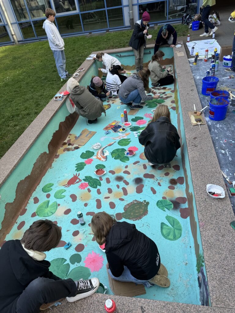 Kunst-AG gestaltet das Becken im Innenhof des Grimmels neu