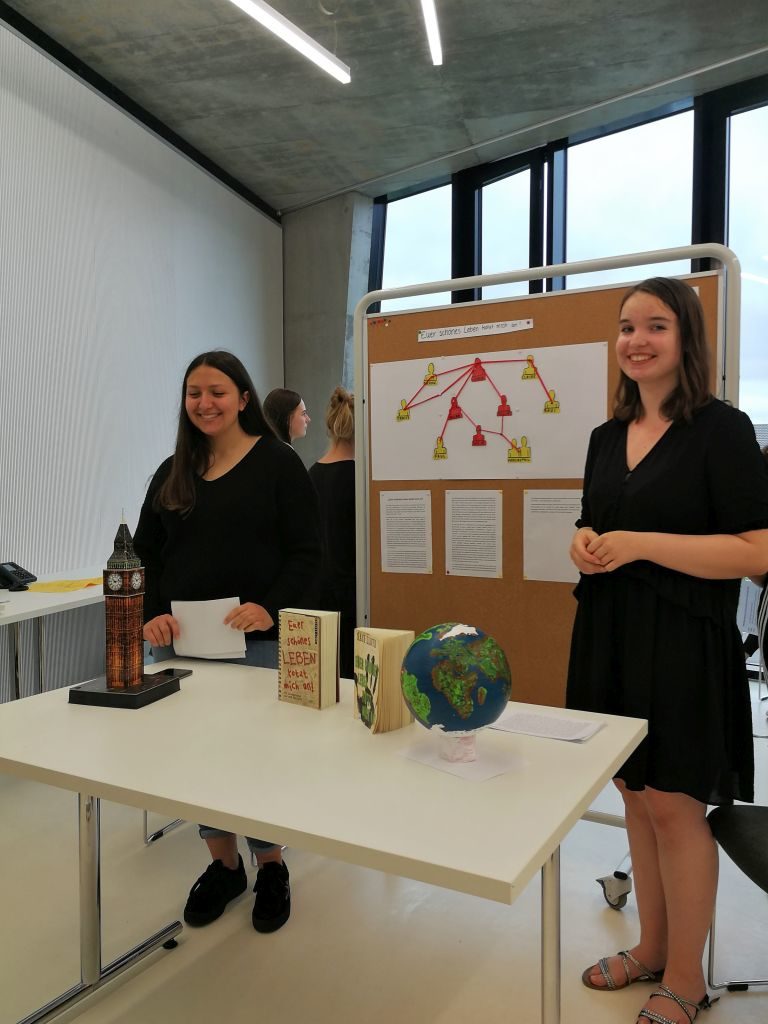 Diese und viele andere Fragen werfen heutige Jugendromane aus dem Genre Utopien und Science-Fiction auf. Sie geben uns die Möglichkeit über mentale Modelle von faktischer Realität (Z.B. Diktatur, Verfolgung, Widerstand) nachzudenken. Am 06.06.2019 organisierte der Ethikkurs Klasse 10 unter der Leitung von Frau Scheithauer am Grimmelshausen-Gymnasium eine Ausstellung zum Thema „Dystopische Welten im Jugendroman“. Die Schülerinnen und Schüler gaben nicht nur Einblick in verschiedene Jugendromane (wie z.B. „Flawed“, „Gelöscht“, „1984“ uvm.), sondern diskutierten mit anderen Schülern der 10. Klasse (Ethik- und Religionskurse) über anthropologische und philosophische Fragen der Romanfiguren. Die Zuschauer sahen schauspielerische Vorführungen in Form eines inneren Monologes, einen selbstgedrehten Kurzfilm und aufwendig gestaltete Stellwände mit gezeichneten Bildern zu den Romanen.