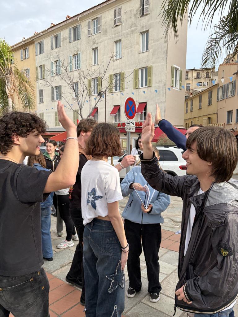 Der Fokus unserer Reise lag hauptsächlich auf der Teilnahme am europäischen Filmfestival „Jeunes Regards“, organisiert von Schülerinnen und Schülern einer Filmklasse unserer Partnerschule Lycée Fesch, einem Oberstufengymnasium im Herzen der Altstadt Ajaccios mit Blick aufs Meer. Gemeinsam mit den französischen Partnerinnen und Partnern besuchten wir deutsche und französische Filmvorstellungen, stellten uns den kulturellen Hintergrund der Filme in jeweils anderer Sprache vor und bekamen sogar die Möglichkeit, bei der Vor-Première einer original korsischen Serie die gesamte Filmmannschaft zu treffen. Am Ende des Austausches durften wir dann im Rahmen eines Workshops lernen, wie man ein Storyboard entwirft. Unsere prägenden Eindrücke und Erlebnisse hielten wir stets mit der Kamera fest, um selbst Filme über unseren Aufenthalt zusammenzuschneiden.
