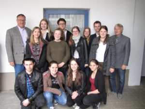 Es freuen sich das Schul-Sanitätsteam unter der Leitung von Stephen Franz und die Schülervertretung des Grimmelshausen Gymnasiums.