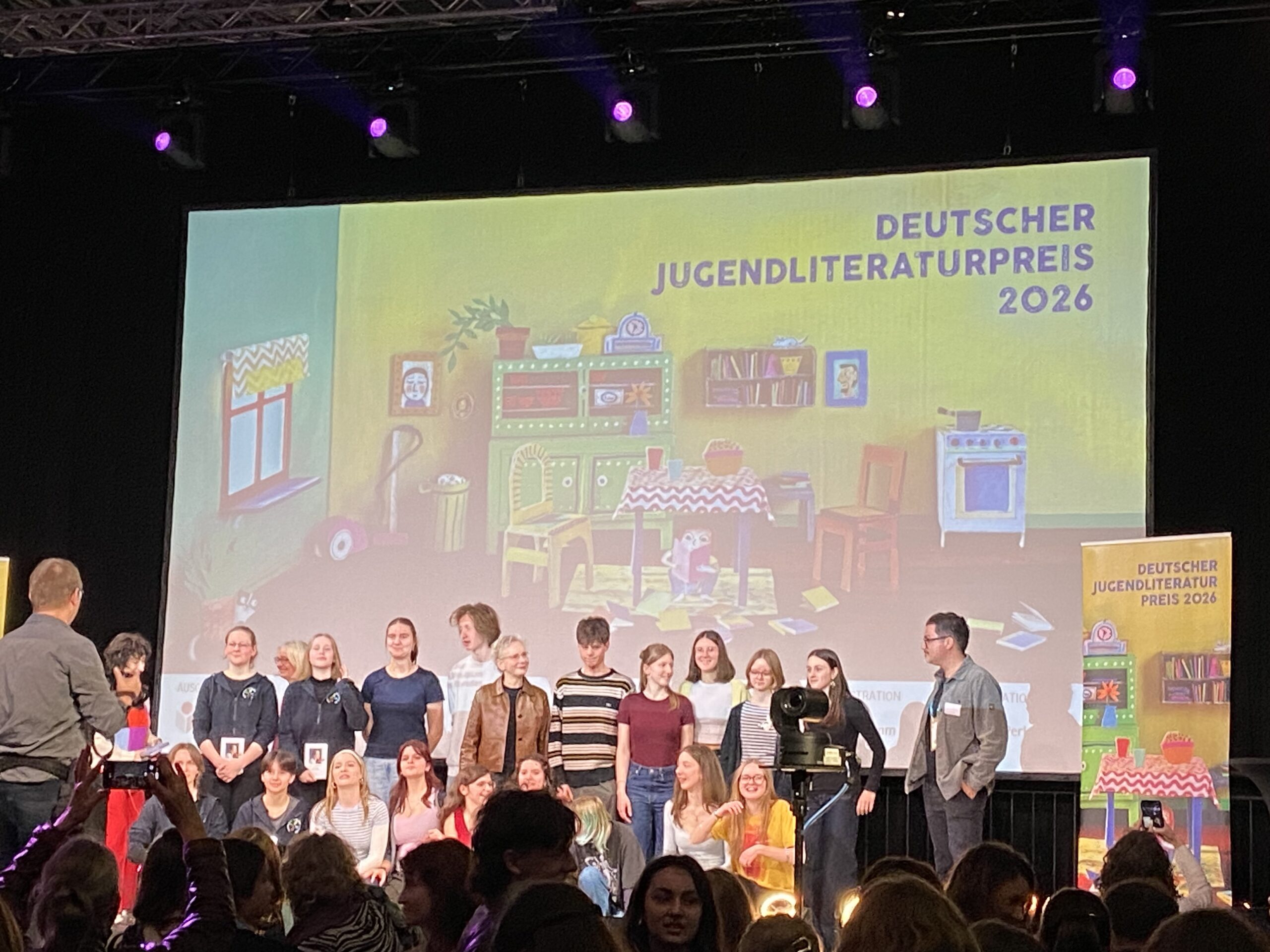 Endlich ist es soweit! Auf der Leipziger Buchmesse wurden am 20. März 2026 die neuen Bücher für den Jugendliteraturpreis nominiert und 10 Jugendliche aus der Literatur-AG waren mit Elena Serdjuc und Christine Bischoff als Gäste mit dabei.