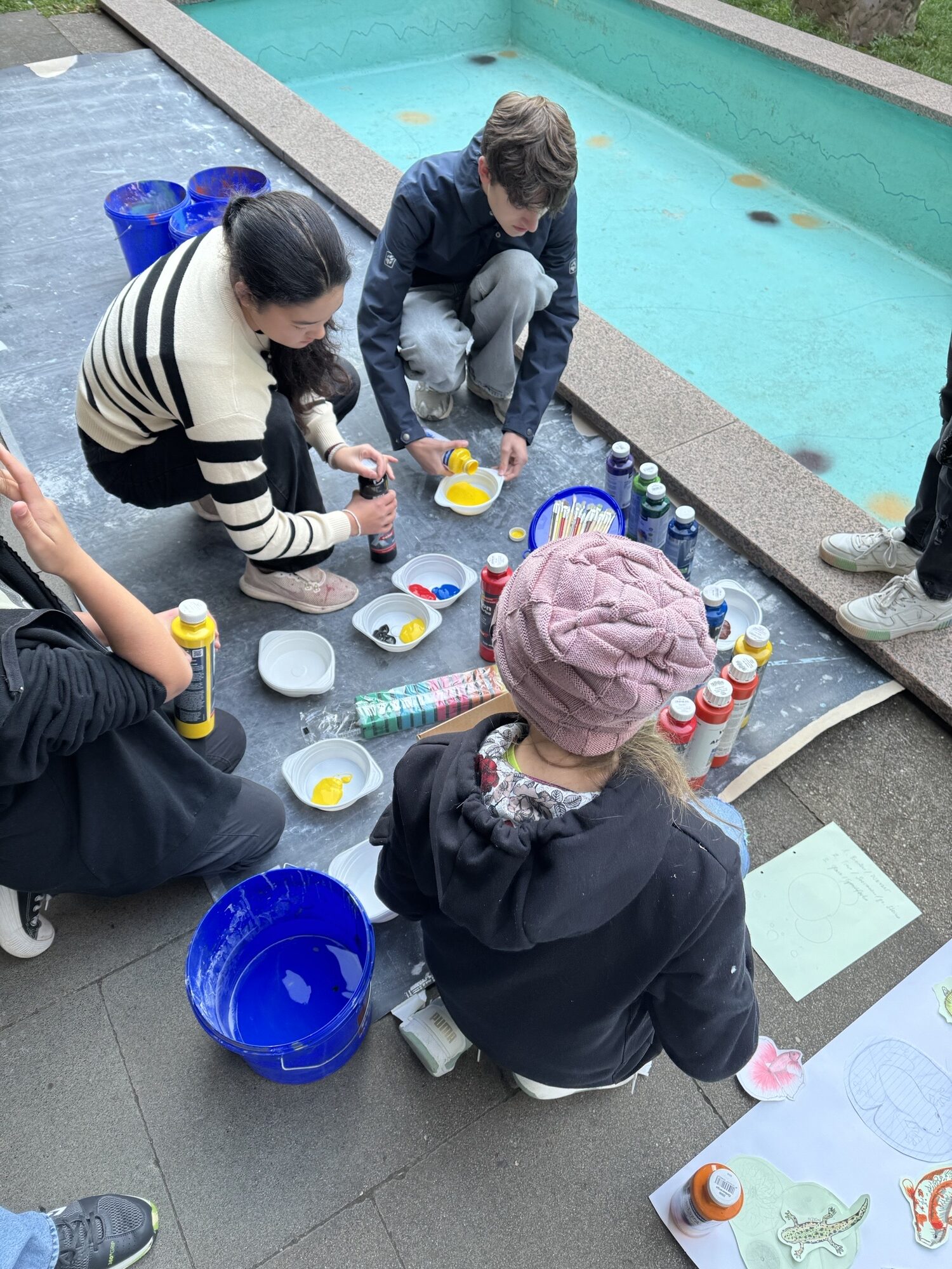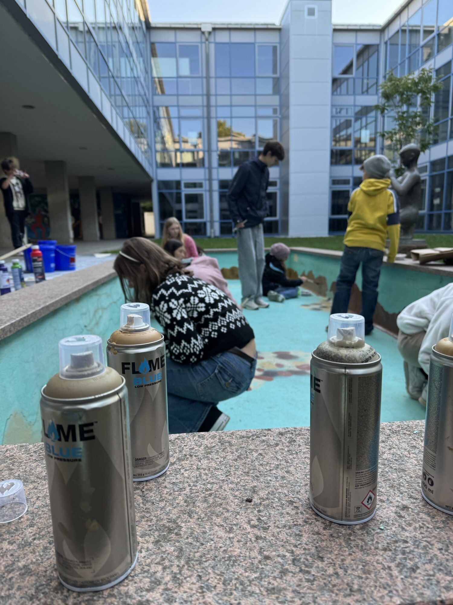 Kunst-AG gestaltet das Becken im Innenhof des Grimmels neu
